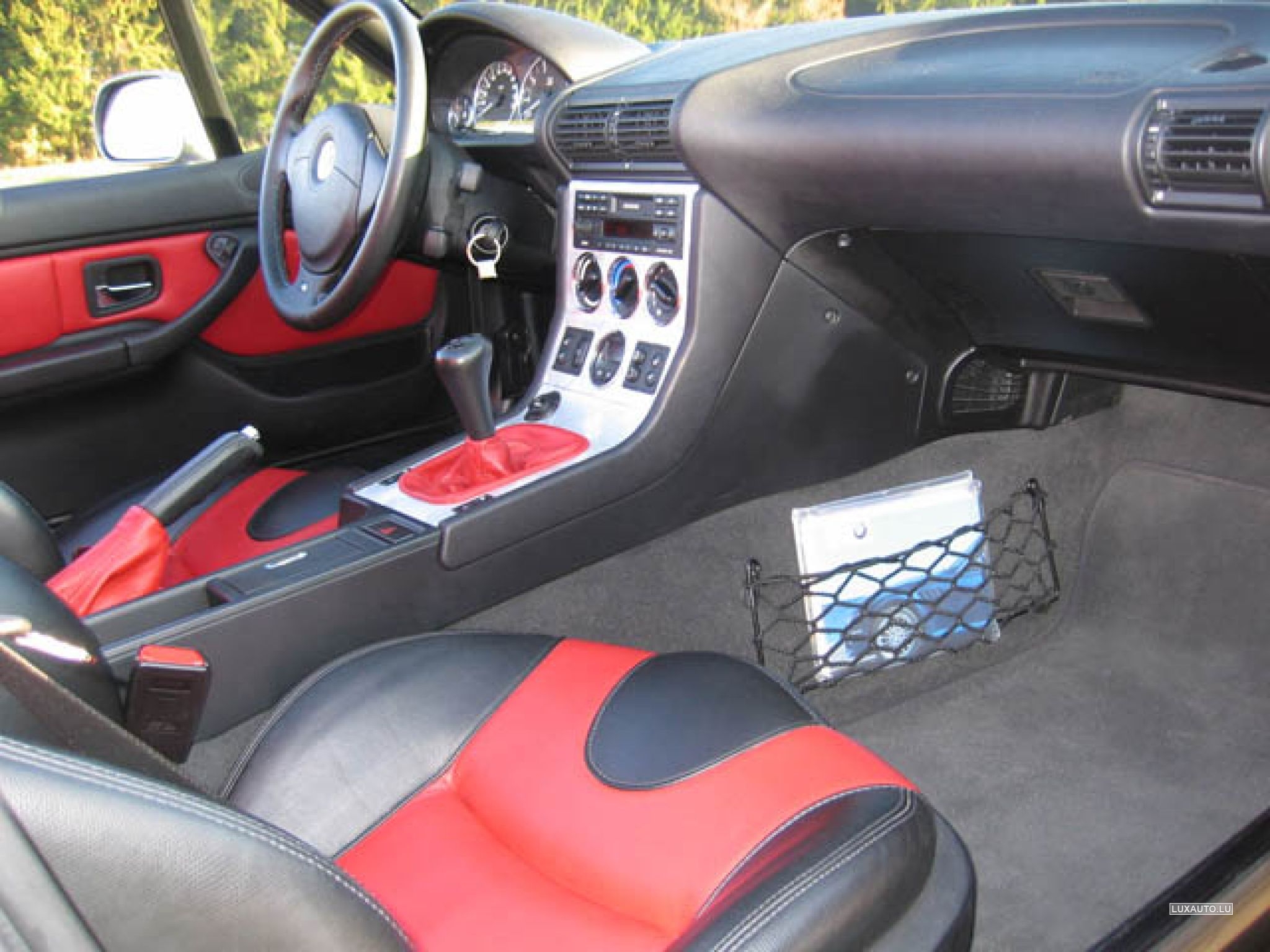 M-Sportpaket, Y-Speichenstyling 17", Chameleonleder Schwarz/Rot, Klimaanlage, Sitzheizung, elektrische Sitze, Harman-Kardon Soundsystem mit BMW 6-CD-Wechsler im Kofferraum, Teilelekt. Verdeck. Differentialsperre. Werkzeuge im Kofferraum.