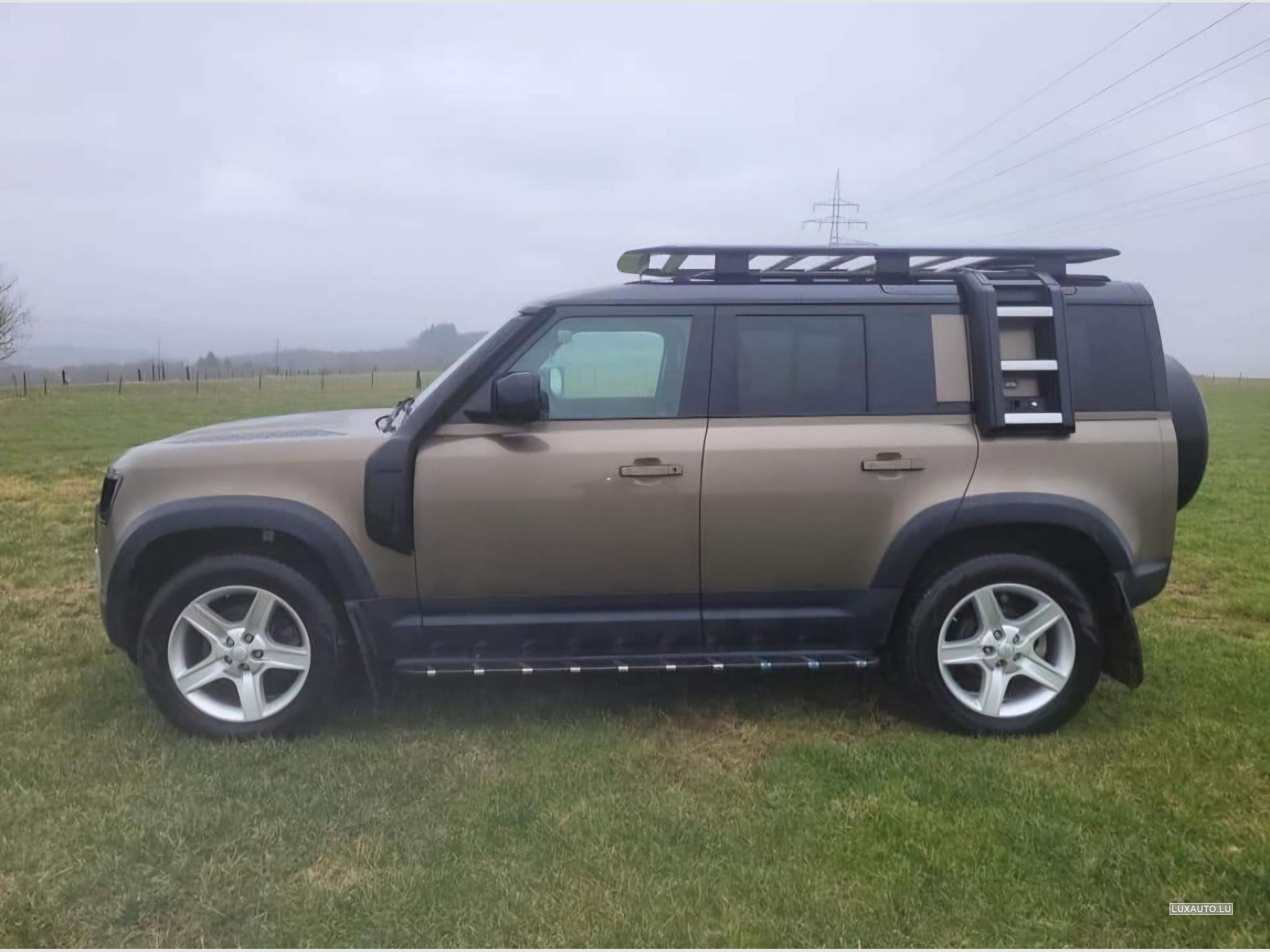 Je vois mon Land Rover Defender, premier propriétaire, il est équipé d'un pack explor plus une échelle .
