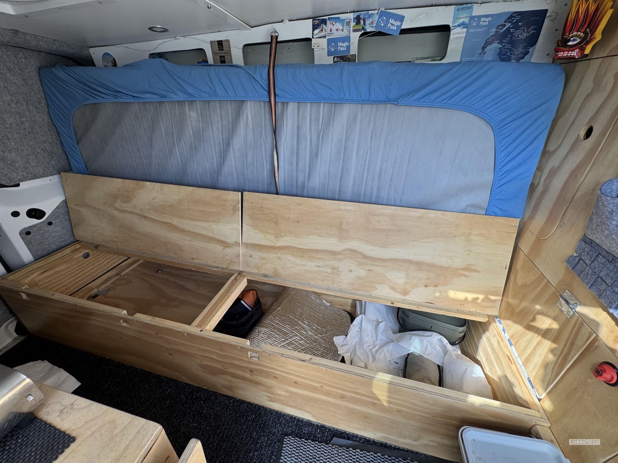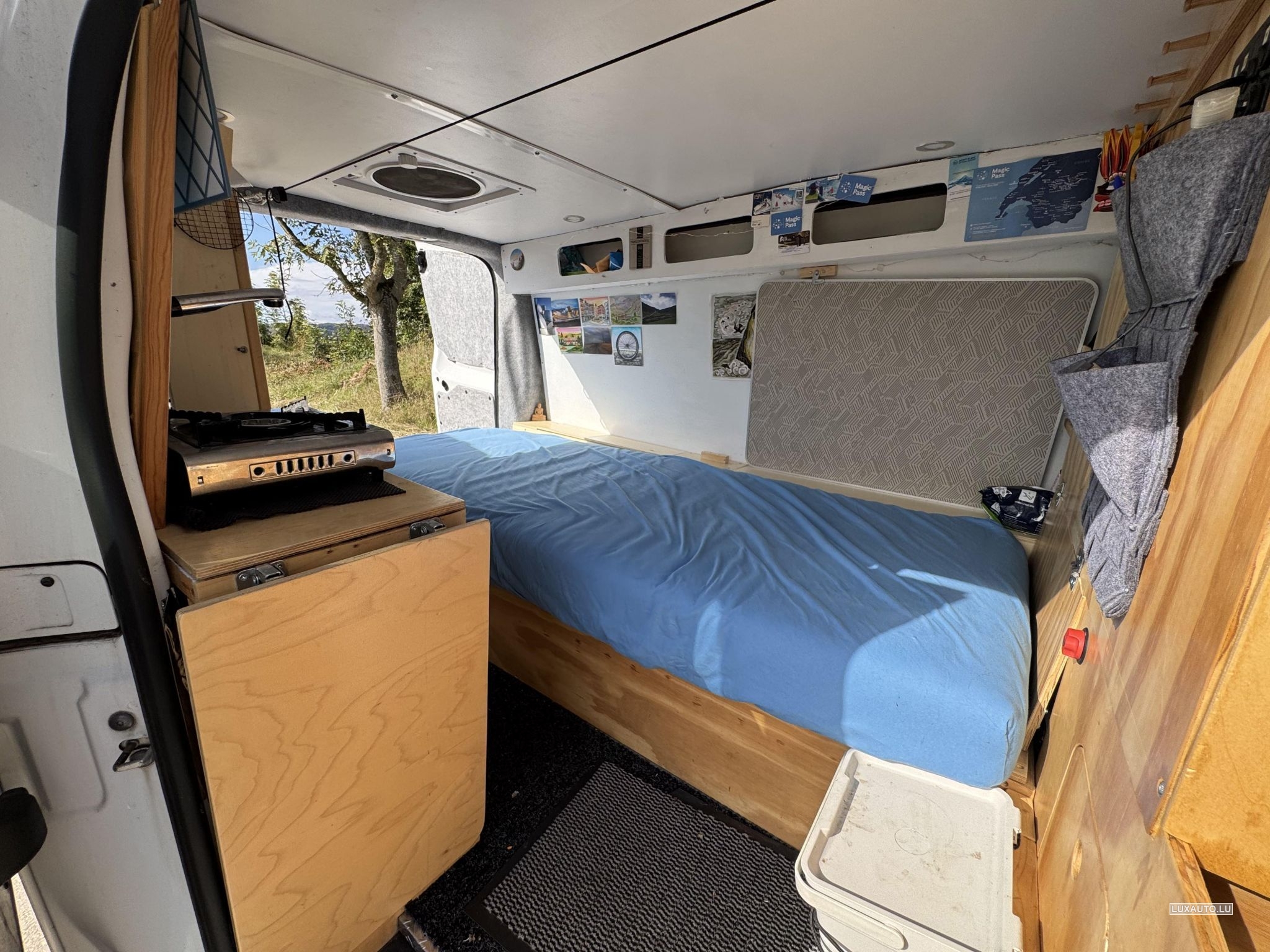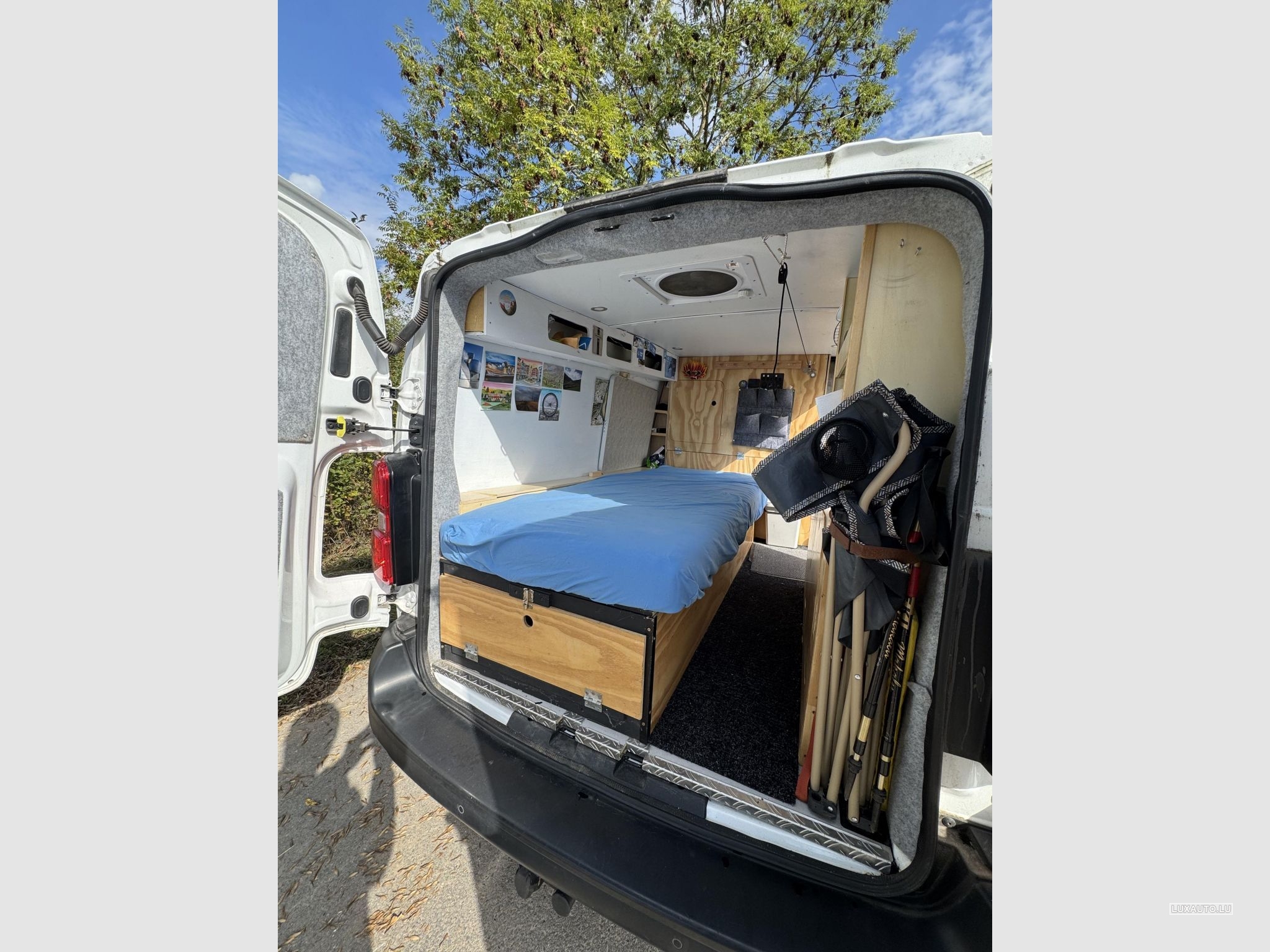 Mini camping-car basé sur Opel Vivaro. Lit amovible, circuit d'eau, cuisinière, rangements, éclairage. J'ai installé un système Victron complet pour la charge, l'alimentation secteur, la connexion batterie-batterie, le chauffage diesel, un lit confortable, une barre de remorquage, une galerie de toit, un coffre à skis, 4 pneus hiver, 4 pneus toutes saisons. Très propre et bien entretenu. Facile à reconvertir en fourgonnette si besoin. Possibilité de couchage pour deux personnes (l'extension de lit n'est pas visible sur les photos).