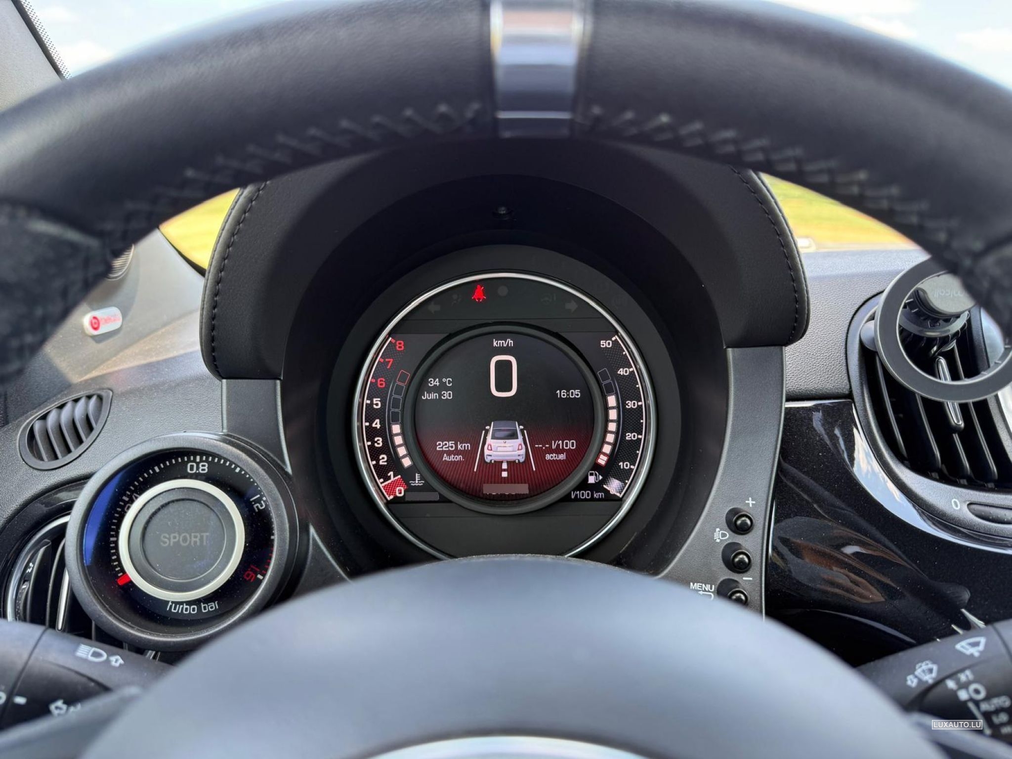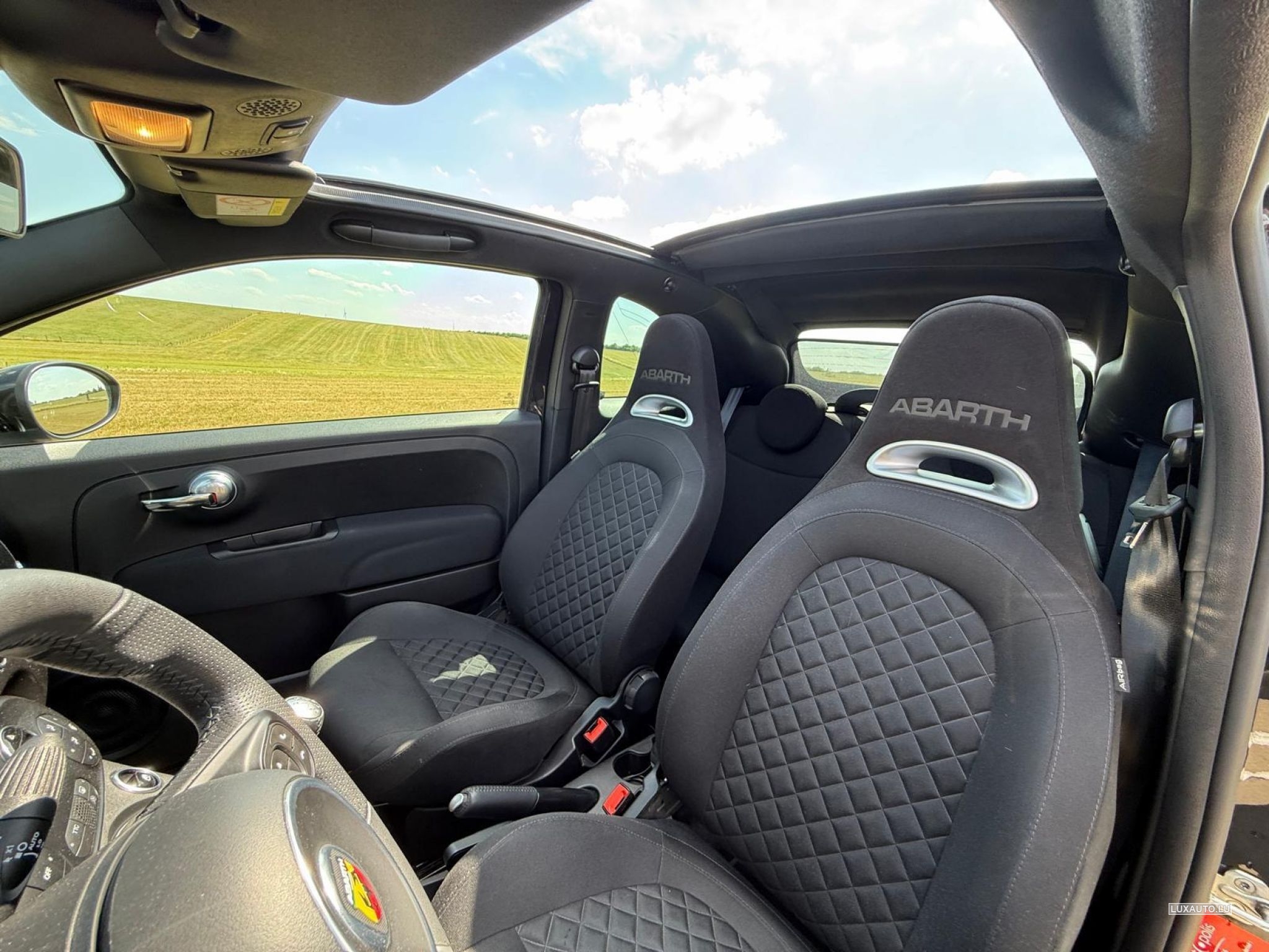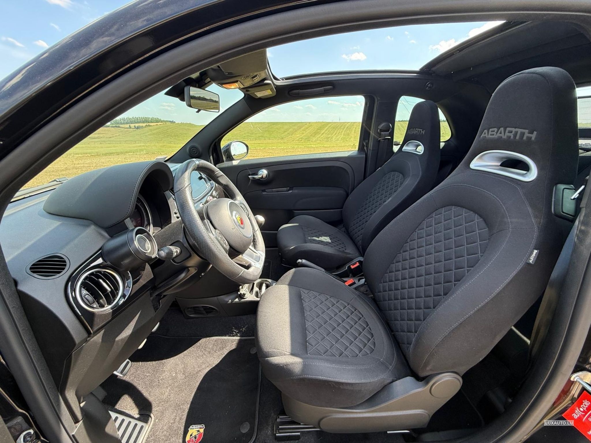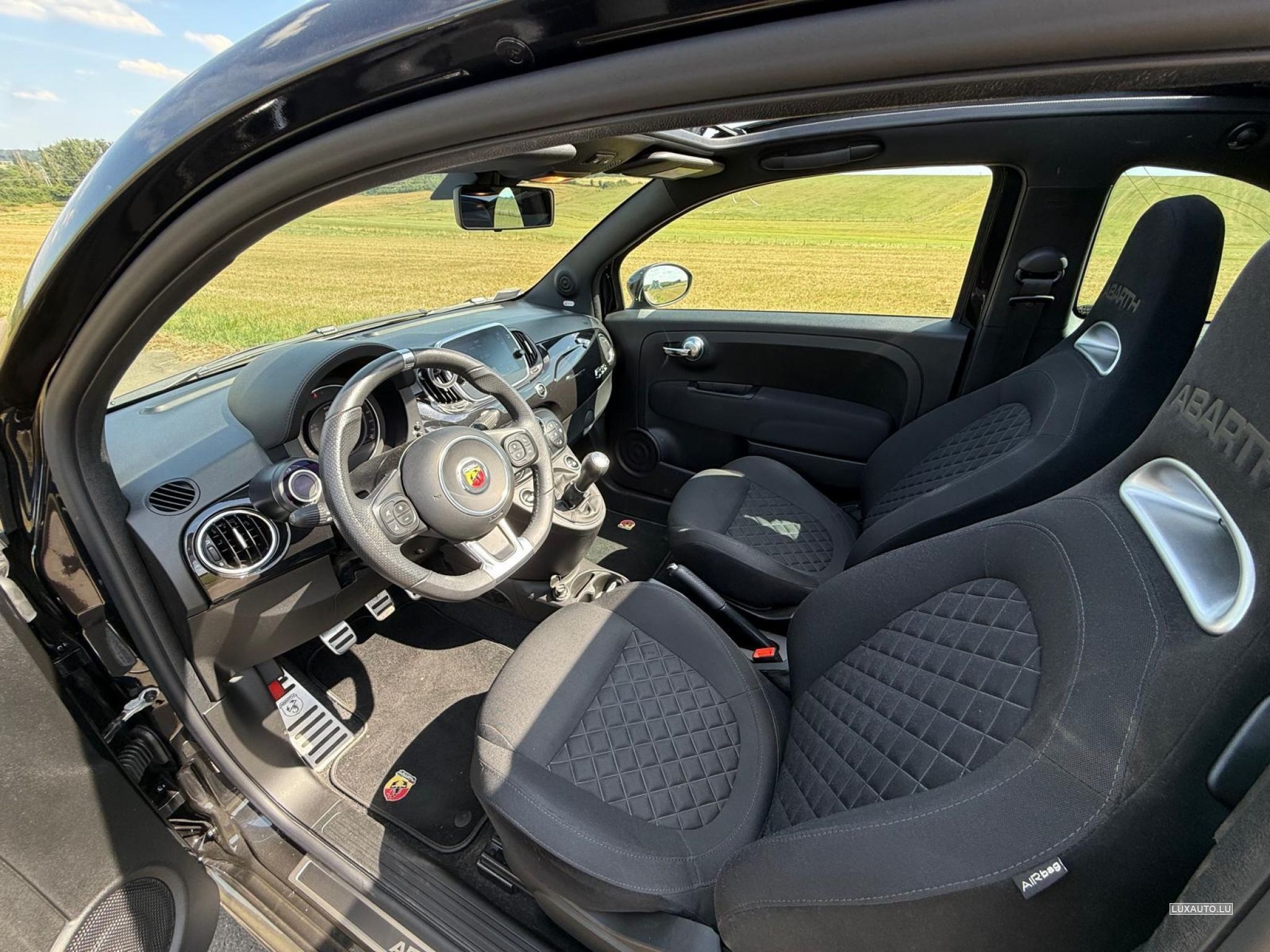 Etat impeccable. Nero Scorpione; Sièges Abarth S; Pack Urban; Hifi Beats; Navigation: 7'', Wind Stop; Roues hiver originales Abarth ; CT: 04/27.