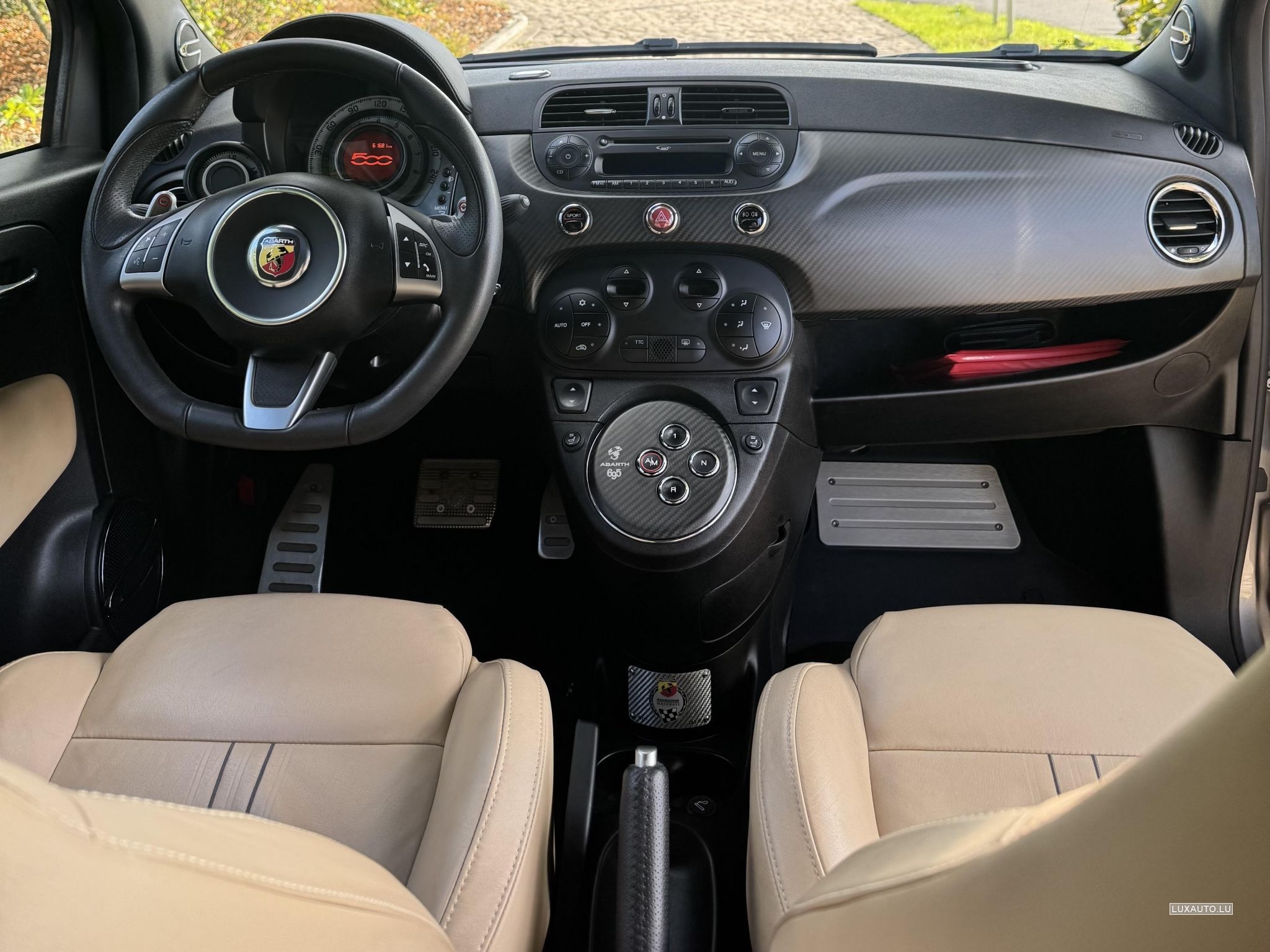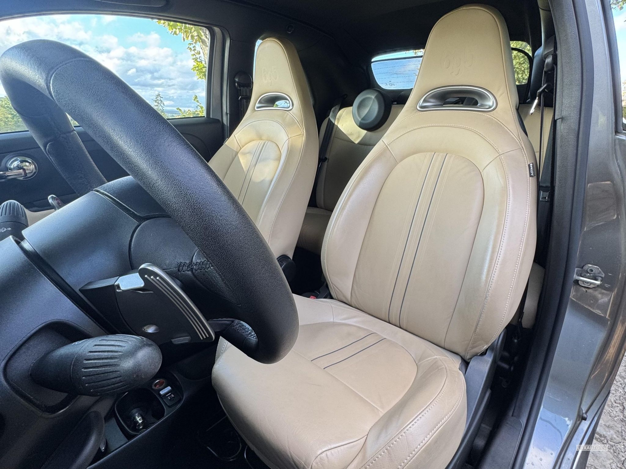 • Volant sport Abarth (volant d’origine retiré par l’ancien propriétaire pour ne pas l’abîmer – fourni avec son sac de protection officiel)