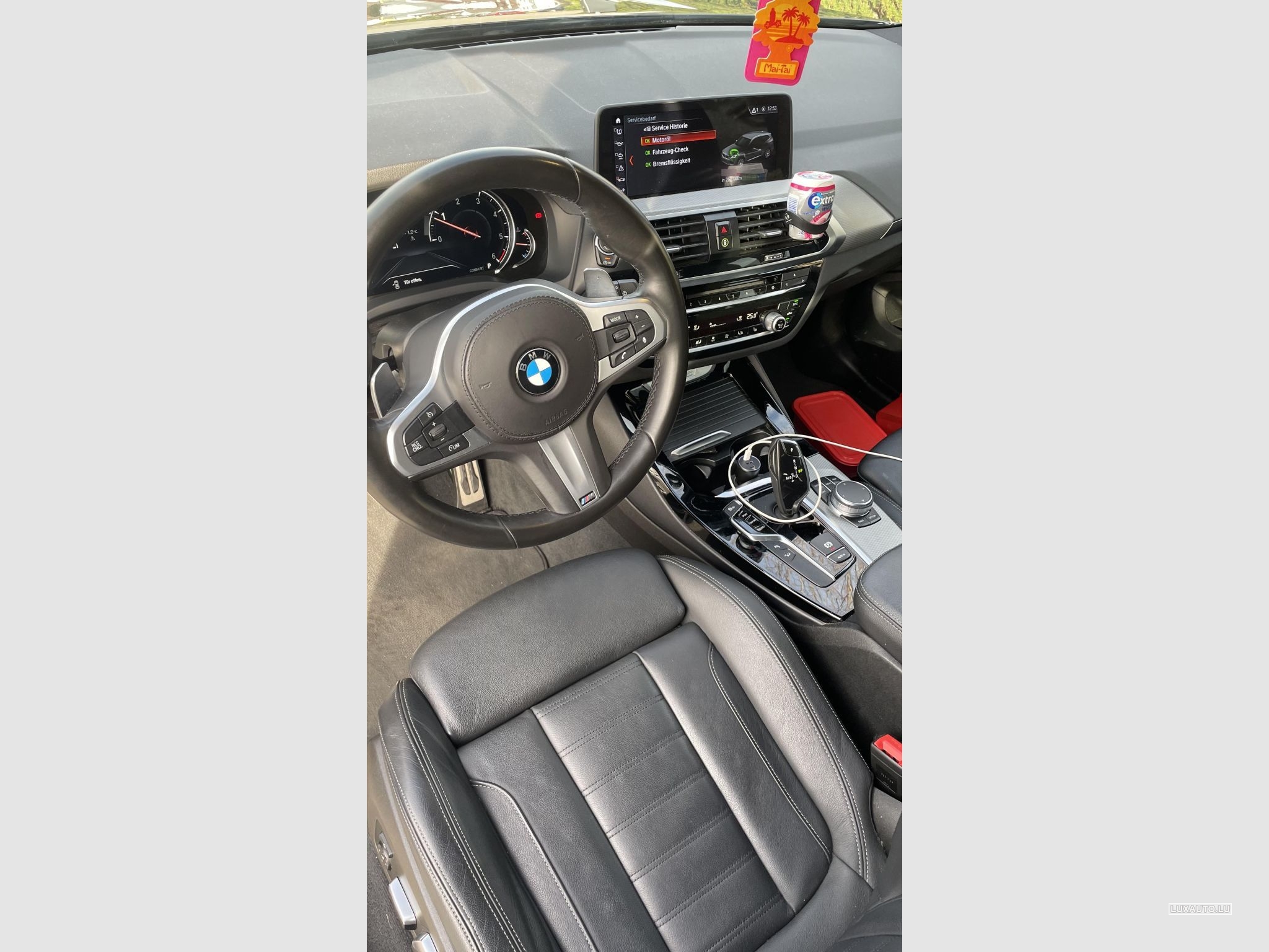 je vends ici une BMW X3 G01 xDrive20d de novembre 2017 avec pack M et Shadow Line, provenant du deuxième propriétaire. La voiture est en très bon état et entretenue selon le carnet chez BMW jusqu’à 156 000 km. Le prochain service est prévu dans 25 000 km ou en août 2027. Elle dispose d’un très bon équipement : caméra de recul, sièges entièrement électriques, sièges à mémoire, attelage de remorque et bien plus encore. Elle est équipée de jantes 19 pouces avec pneus hiver, et je n’ai malheureusement pas de pneus ou jantes d’été. Aucune jante n’est rayée.