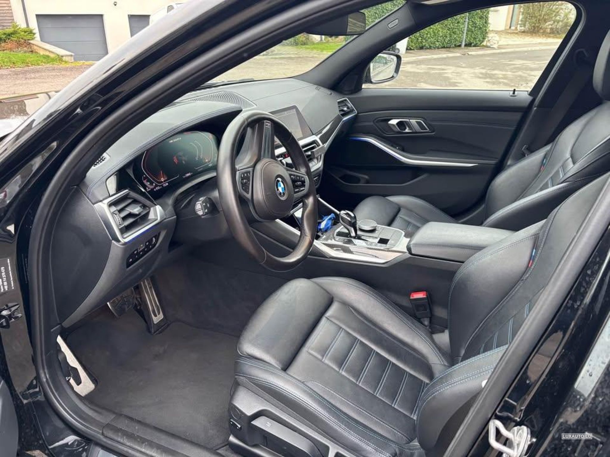 Siège: cuir noir vernasca surpiqûre bleu chauffant.