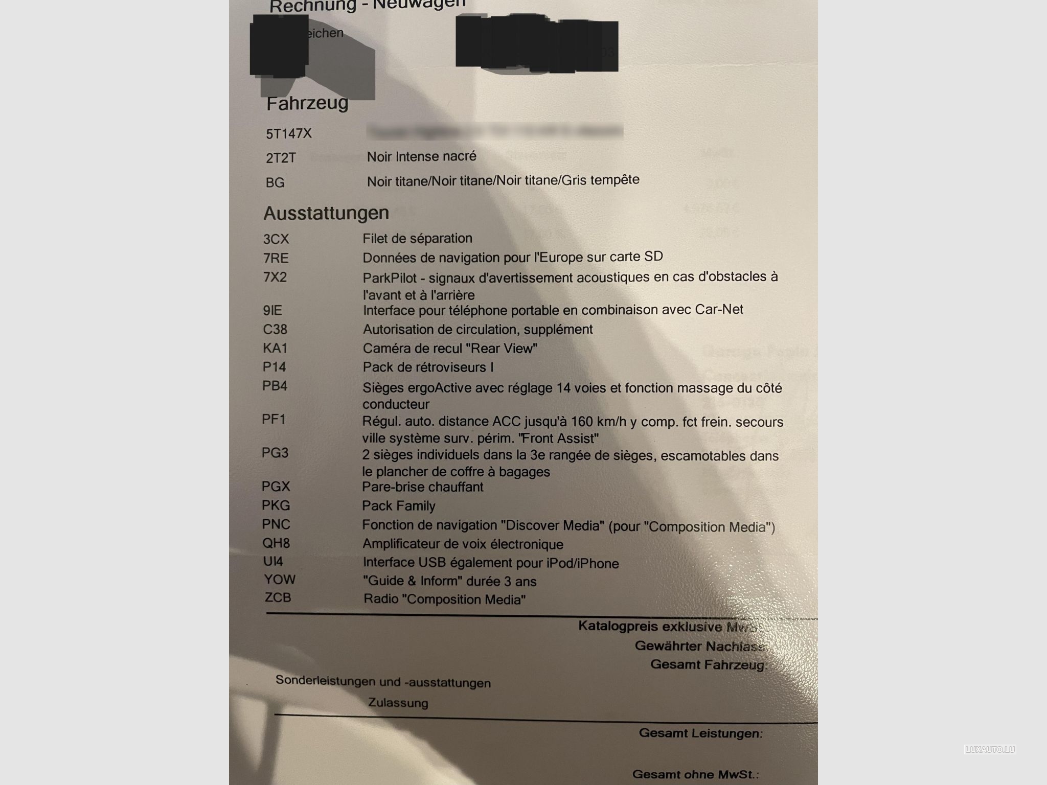 Voiture 7 places + options diverses (voir facture avec option en photo)