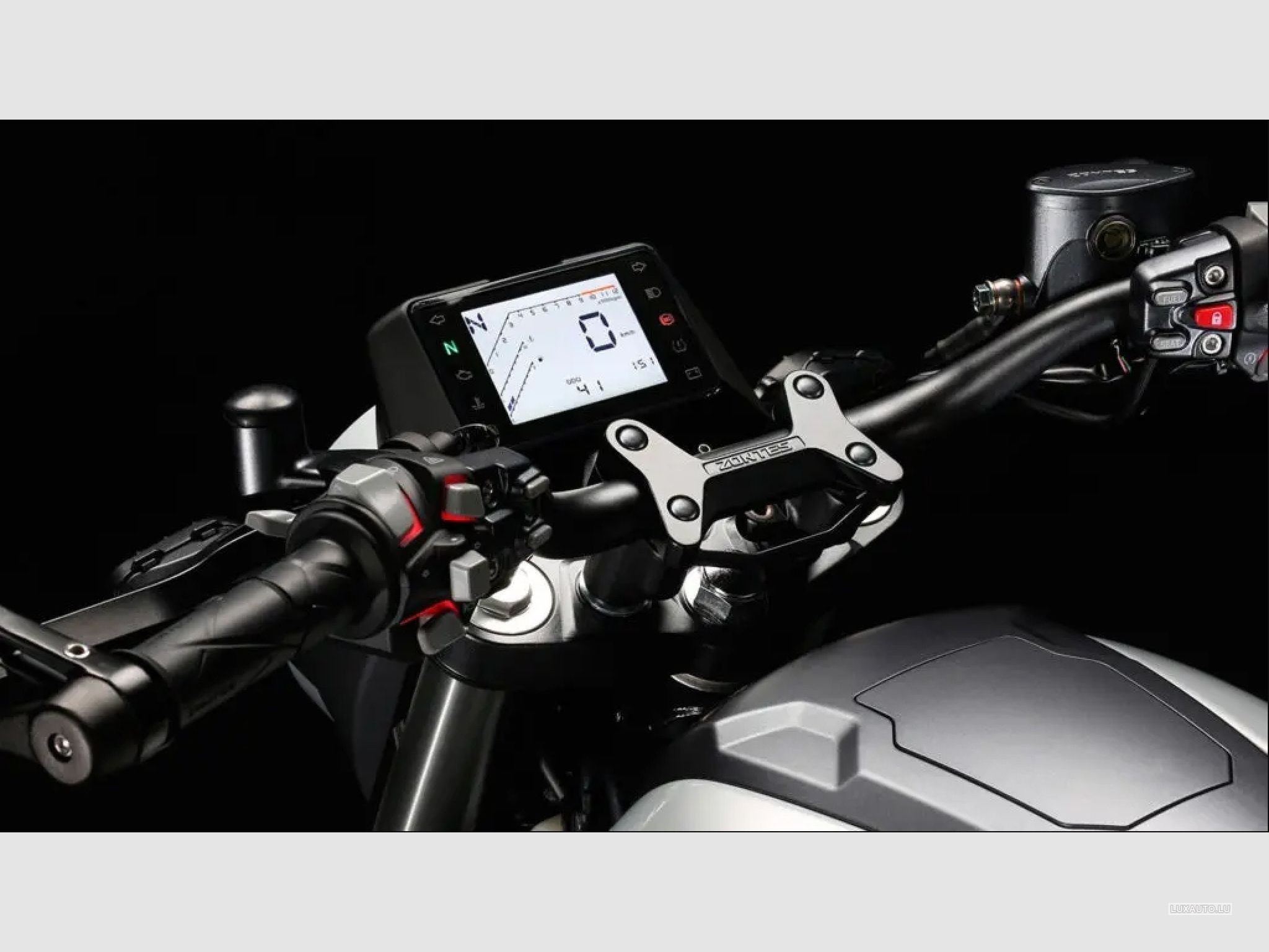 Le roadster GK125 est un concentré de ZONTES dans une cylindrée accessible à tous. Stylé, performant et maniable, ce roadster au caractère sportif et aux lignes tranchées offre un comportement sain et rigoureux. Intuitif et sécurisant, avec son freinage ABS de série, le roadster GK 125 est aussi performant, grâce au moteur de nouvelle génération à injection Bosch développant 14,7CV. L’injection électronique permet d’atteindre 500km d’autonomie avec un seul plein, soit à peine 2,5L/100 km de consommation moyenne!