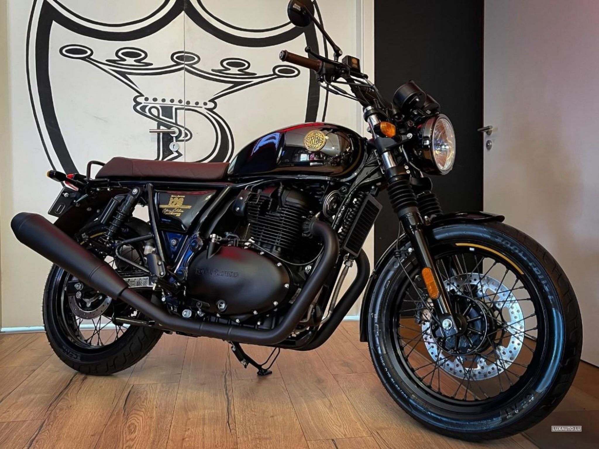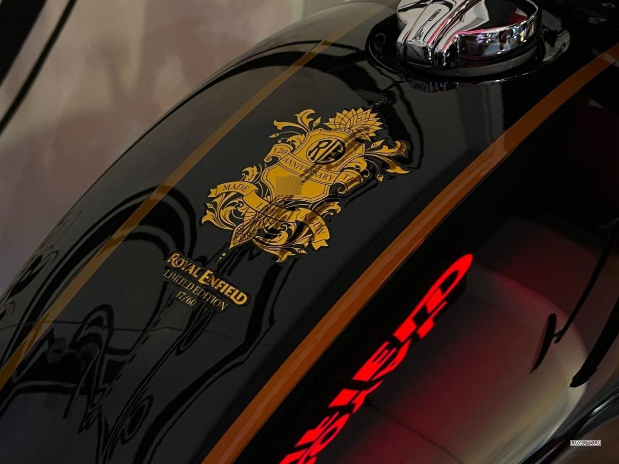 Édition exclusive avec un réservoir noir chromé et des détails dorés peints à la main. N° 17/60 en Europe.